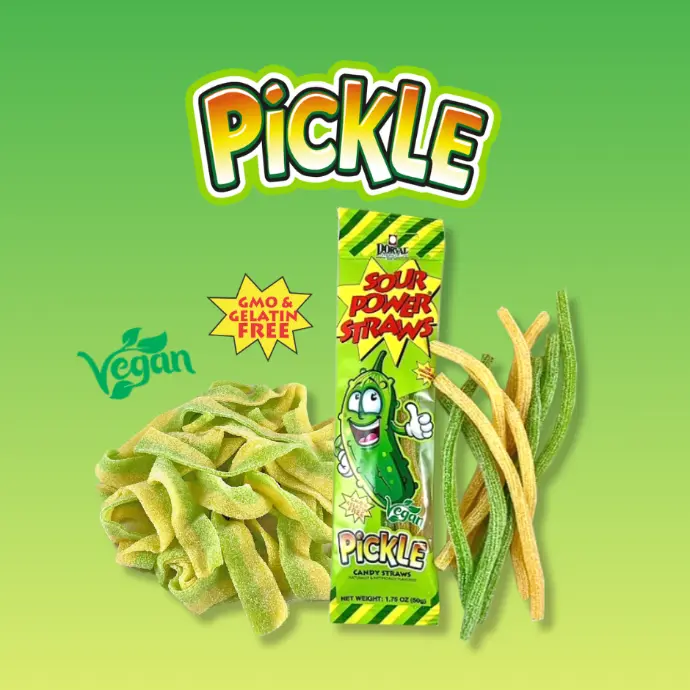 SOUR POWER® NEW Pickle-Flavored Sour Bulk Belts and Straw Packages.